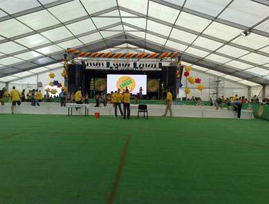 靈通篷房目前已成為眾多國內(nèi)外大型體育賽事的篷房供應(yīng)商,靈通提供的賽事篷房主要用作于觀眾看臺、餐廳、休息廳、售票處、安檢處等多種用途。靈通篷房為賽場上的工作人員、觀眾提供更好的工作場景和觀賽體驗(yàn)。這里也不得不說安檢篷房,安檢篷房也是賽事篷房中的一種,用于安檢進(jìn)場使用的篷房。